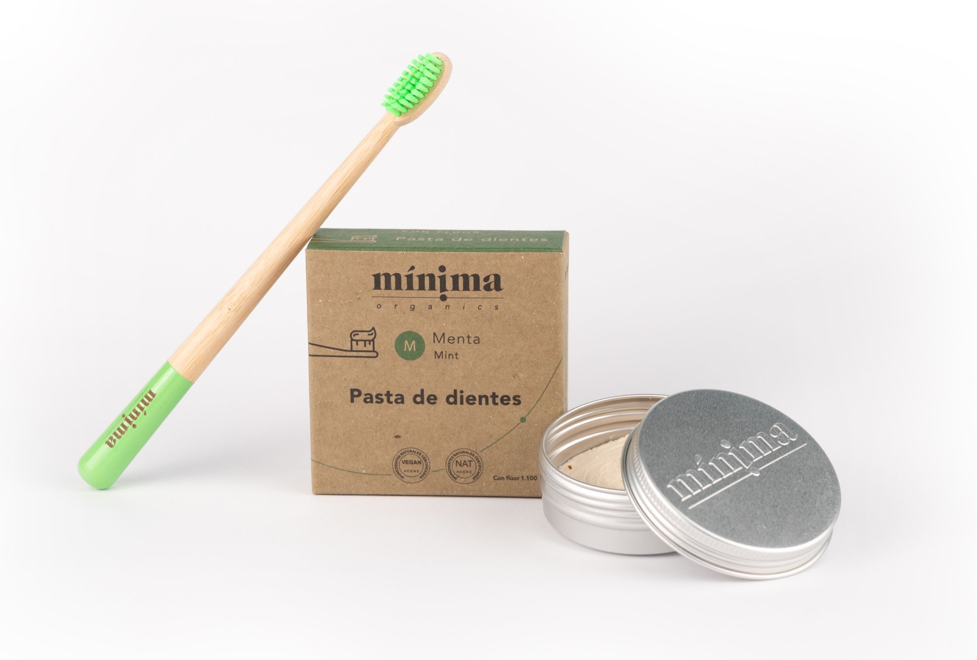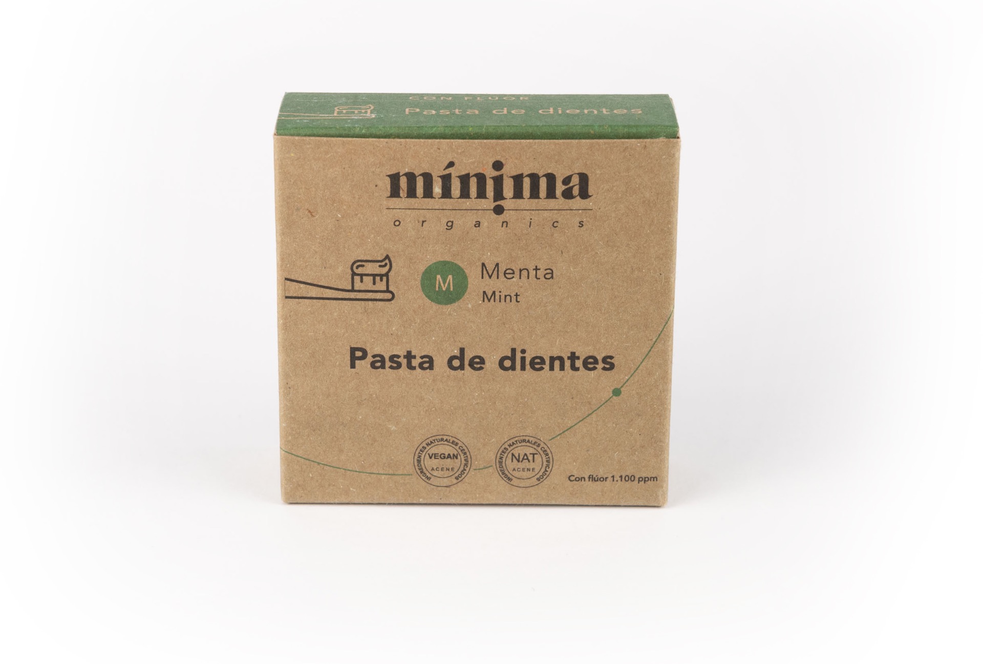 La pasta de dientes de Mínima es orgánica y sin plástico. Con menta, ácido hialurónico, xylitol,